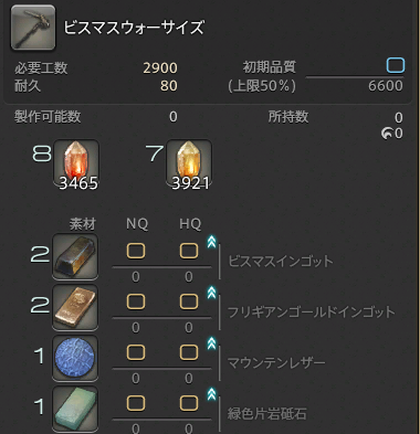 - リーヴ納品やマーケットボードでの販売において高い報酬を得るために重要です。特に、リーヴ納品でHQアイテムを提出することで、報酬が2倍になるため、製作時にはHQを狙うことが推奨されます