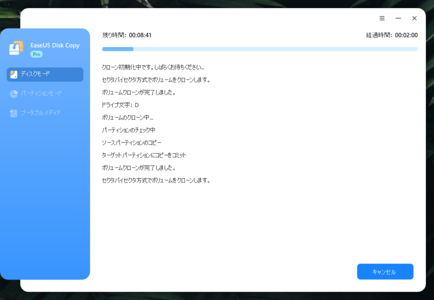 EaseUS Disk Copyは、OS・ファイルシステム・パーティションに関係なく、ハードディスクやパーティションのセクターごとのクローンを作成できます。