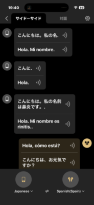 - 相手(またはスマホ側)で外国語を話す → 日本語に変換されて、その音がイヤホンから聞こえる
