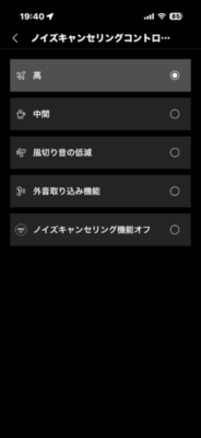 ANC(ノイズキャンセリング):3段階で効き方が分かりやすい