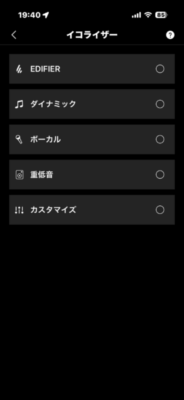 ※立体音響にすると、EQプリセットを細かくいじるというより「立体音響の音」になって、EQ設定とは切り替わる挙動でした。ここは好みで、プリセットで追い込みたい人もいると思います。
