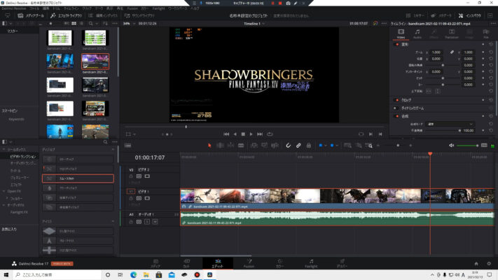 カット割りもスムーズに動きますし、エフェクトを入れても特にもたつくことはありませんでした。