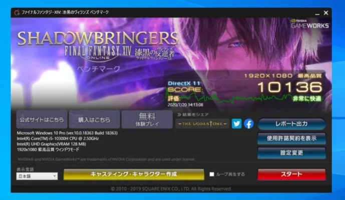 ミドルクラスのゲームが遊べるかチェックするための定番ベンチマークになってきたFF14。最高品質でも問題なくプレイできます。