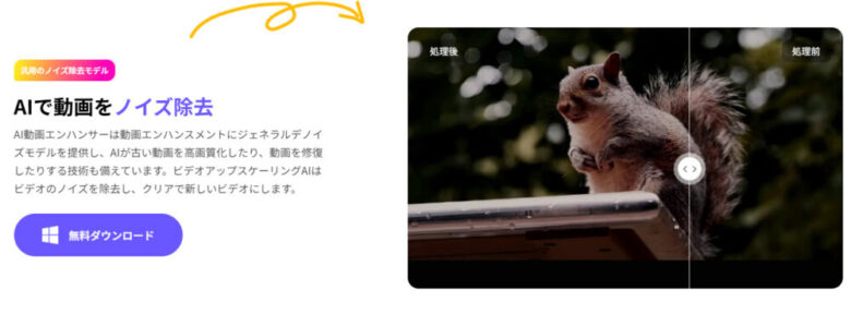 - 動画修復機能:ぼやけや破損など、劣化した動画をAIの力で自動修復する機能が無料で利用できます。