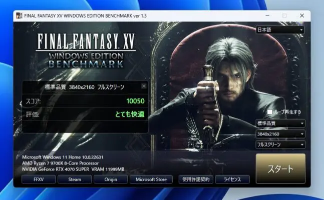 FF15は、重たいことで有名なゲームで、このベンチマーク結果が良ければ、基本重たいゲームもサクサクプレイできます。