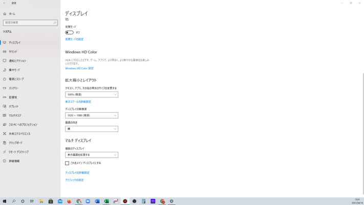 デスクトップ画面で右クリックして、ディスプレイ設定を開いてください。