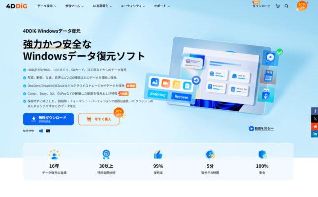 消えたデータを簡単・確実に復元!データ復元ソフト「4DDiG」の活用法