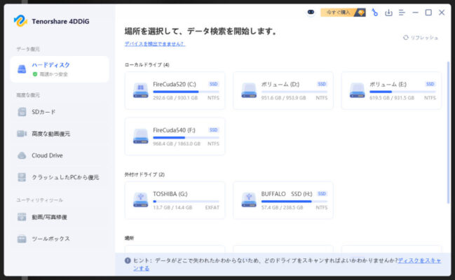 データ消失で困っている方は、すぐに4DDiGでスキャンを試してみてください。