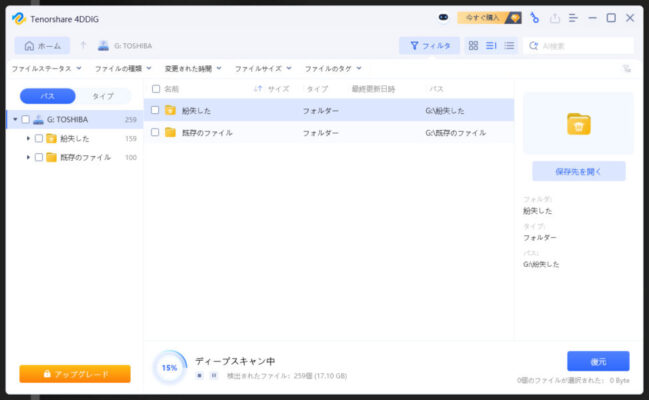 データ復元ソフト4DDiGは、このOSレベルのバグによってアクセス不能になったデータも、簡単かつ高い精度で復元をサポートします。専門知識がなくても、クリック操作だけでプロレベルのデータ復元が可能です。