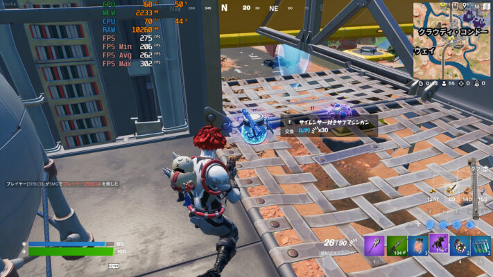 若干画像のFPS数値は見にくいですが、平均320FPSとかなりの高FPS。